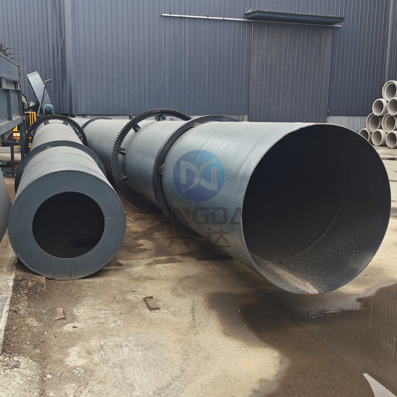 有機肥冷卻機的支撐裝置,在高溫采用活套在內(nèi)筒上的輪帶與托輪支撐,低溫端則在中心軸上用一滾動軸承支撐,并采用中心傳動,使總體結(jié)構(gòu)緊湊、合理。為便與磨損件的檢修和更換,在中間一般設計成軸向剖分式,用螺栓固定連接。該機工作時,物料與熱氣流順流從內(nèi)錐筒的小端進入,被揚料板與熱氣流進行充分的熱交換,同時向大端移動。同理,進入外筒后,物料被勺形揚料板揚起,并均勻地撒落在內(nèi)錐筒外壁的上部,隨筒體慢速回轉(zhuǎn),物料在環(huán)形空間能經(jīng)歷一較長的滯留時間,最后沿筒壁和內(nèi)筒外壁上的導料板流向出口端,通過翻板閥卸出,廢氣由卸料罩上的旋風收塵器收塵后排出。